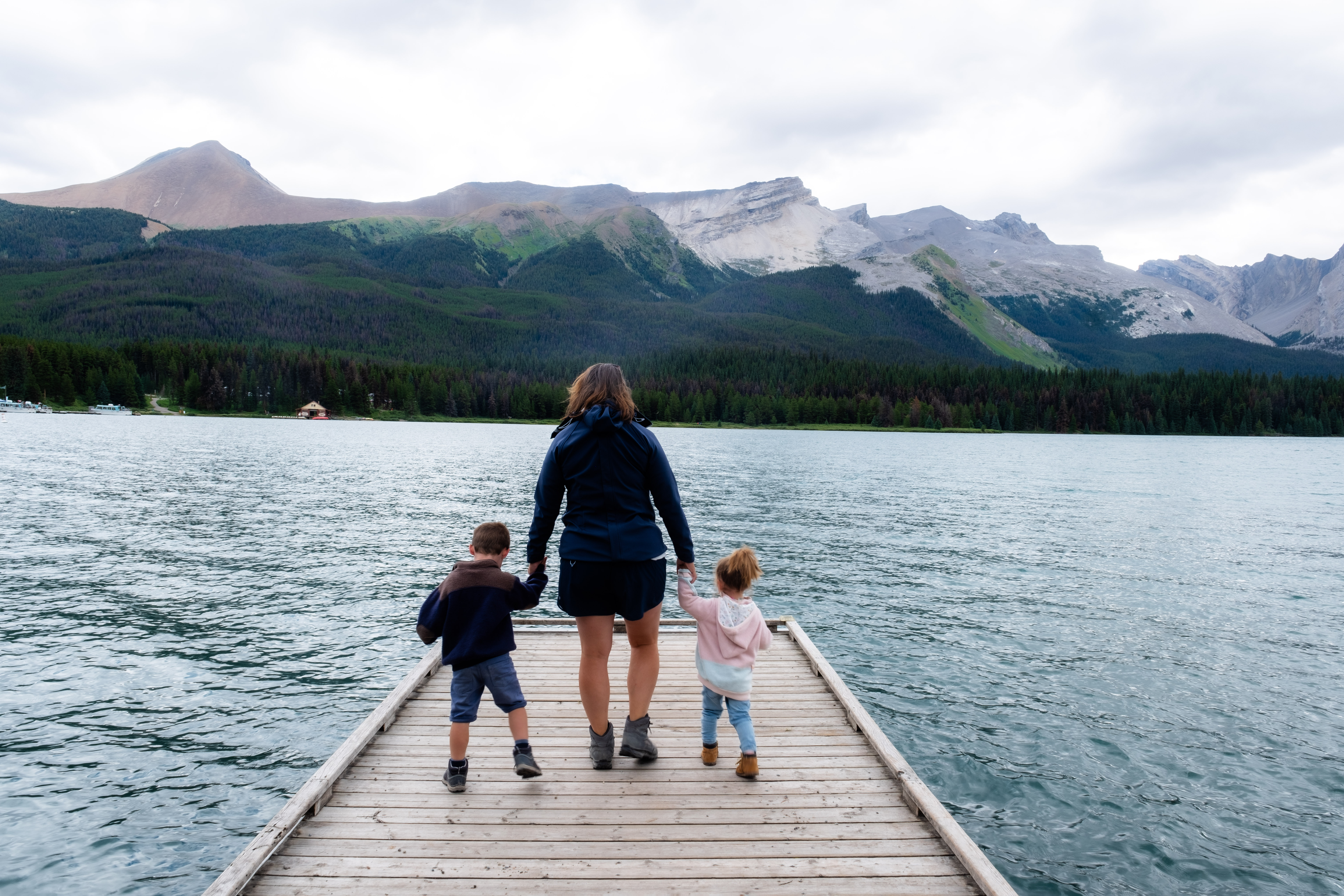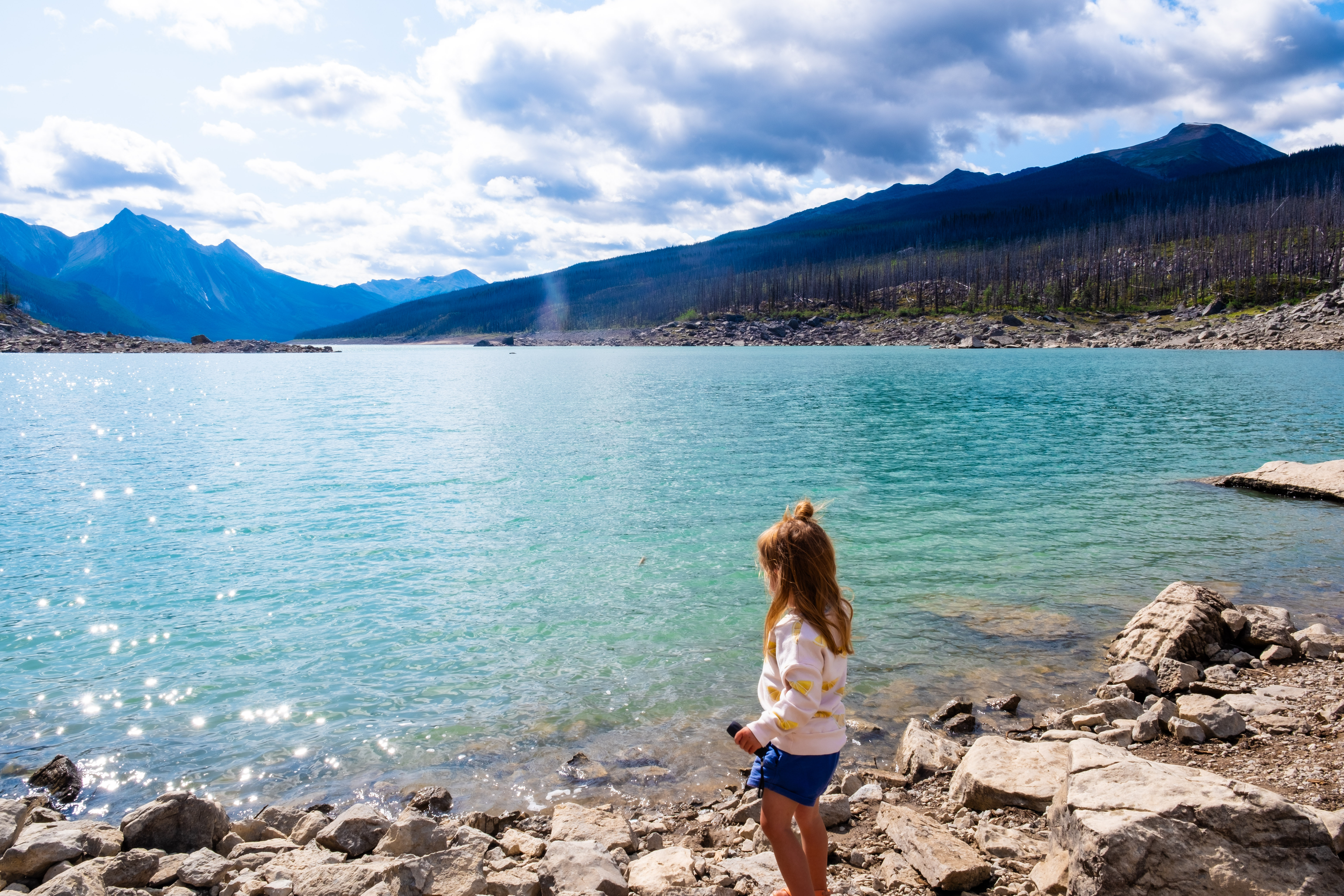The next day we drive in to the park, to visit Maligne Lake and another lake. We walk around for a bit and have lunch. We see boats on the lake and spontaneously decide to take a boat trip. It’s a lot of fun to be on the water, and we see ‘Spirit Island’. Afterwards, while driving back, we see some male elk with beautiful antlers. We finish the day with a campfire and marshmallows as our evening ritual and we enjoy being in nature (and offline).