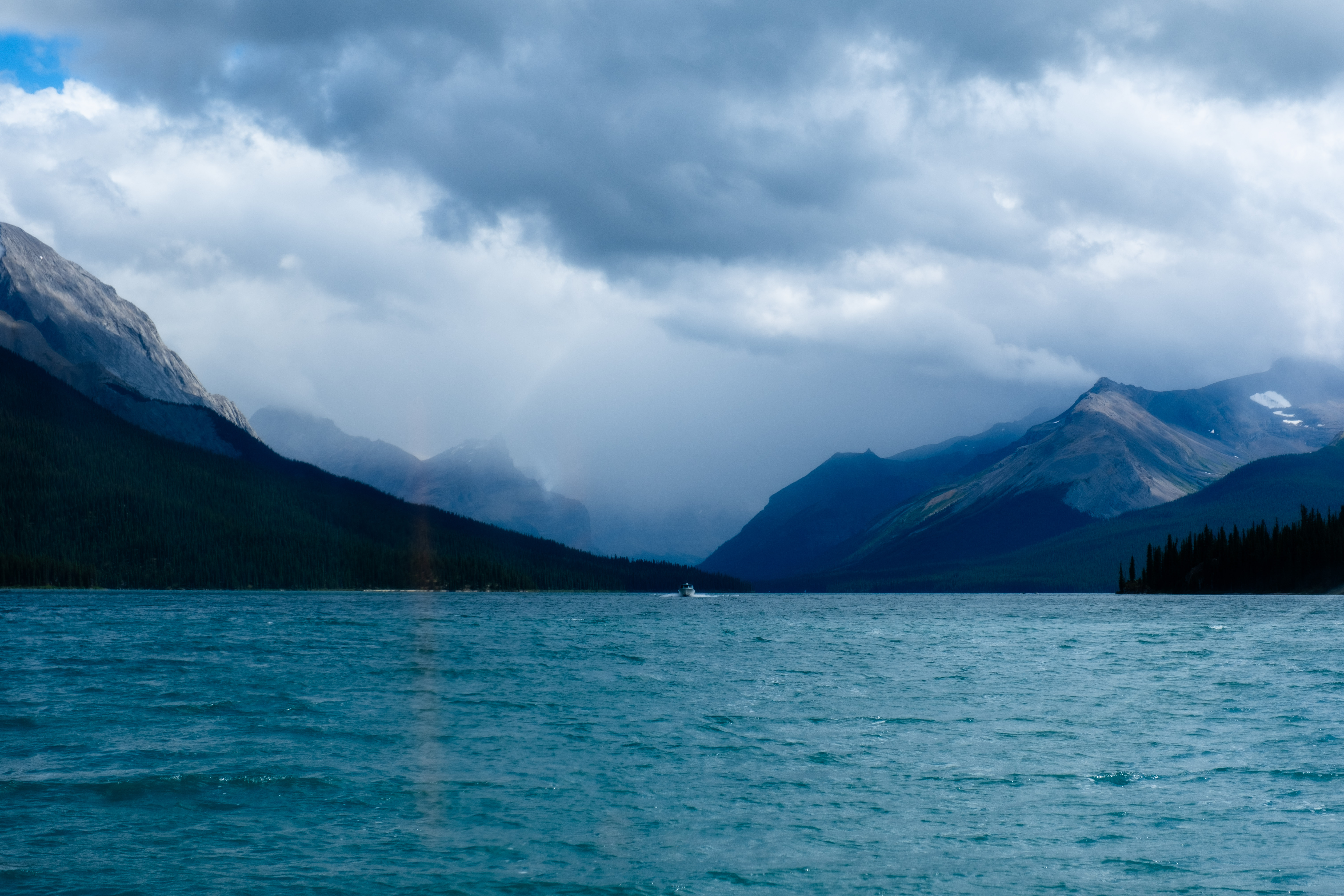 De volgende dag rijden we het park in. Het bestaat uit verschillende gebieden, en wij gaan naar het gebied rond Maligne Lake. We wandelen en lunchen en zien boten varen op het meer. Het is wat fris, maar we besluiten spontaan om op een boot mee te gaan. Het is een prachtig tochtje naar een eilandje (Spirit Island) en we genieten van de buitenlucht en het varen. Als we terugrijden zien we elanden met prachtige geweien. We stoken een vuurtje en roosteren marshmallows. We zijn helemaal offline hier in Canada, omdat we zelfs met het Amerikaanse nummer wat we hebben geen bereik hebben.