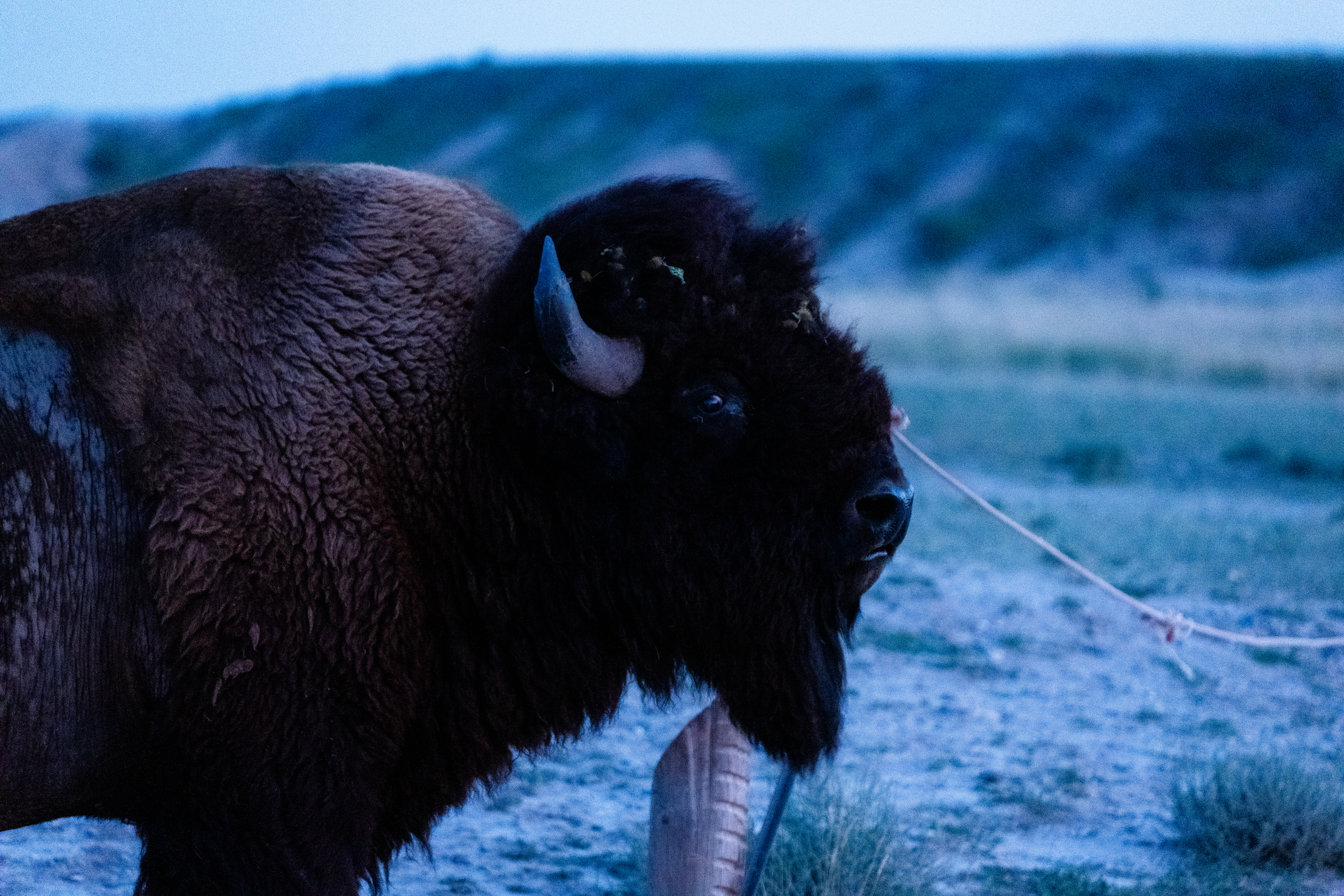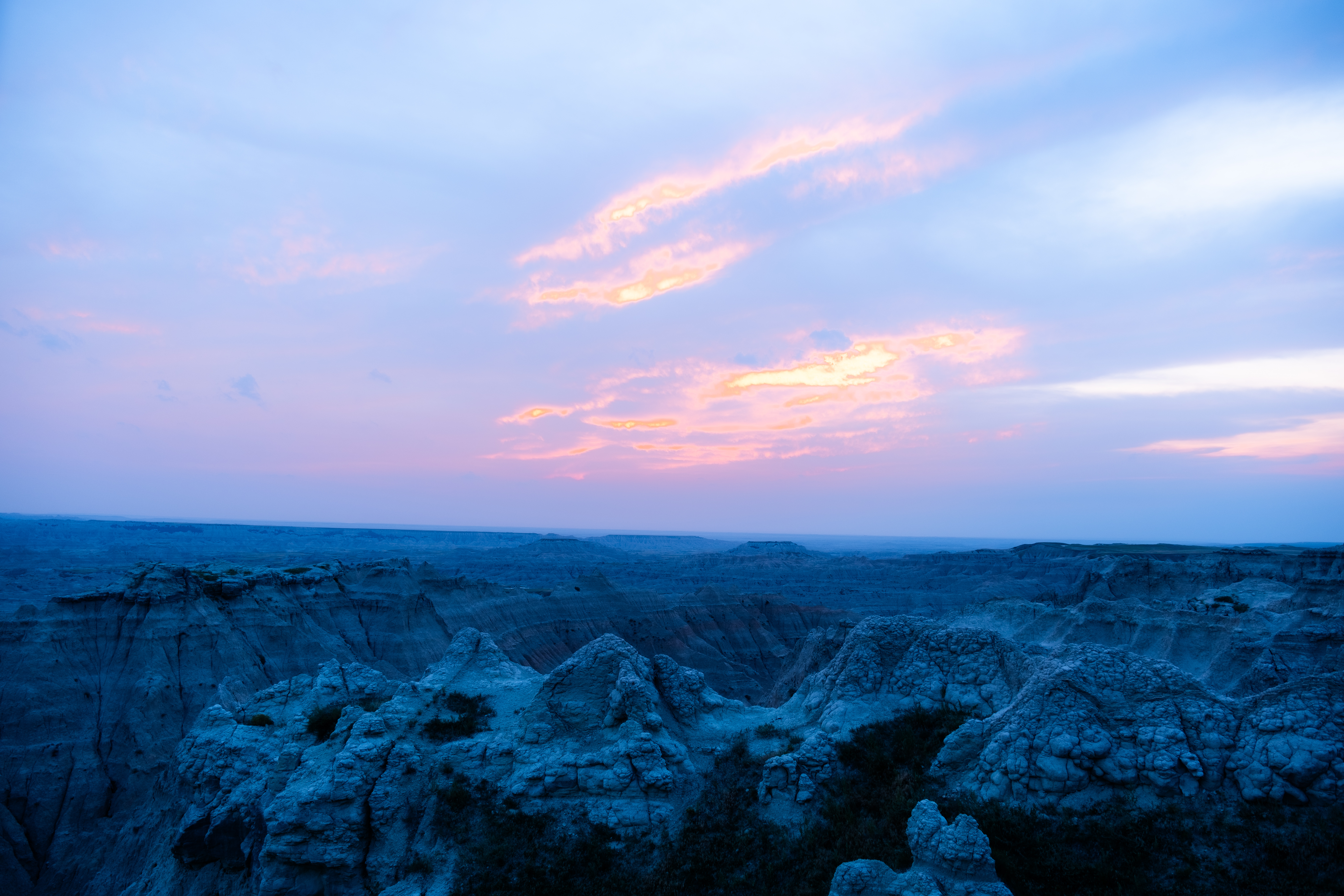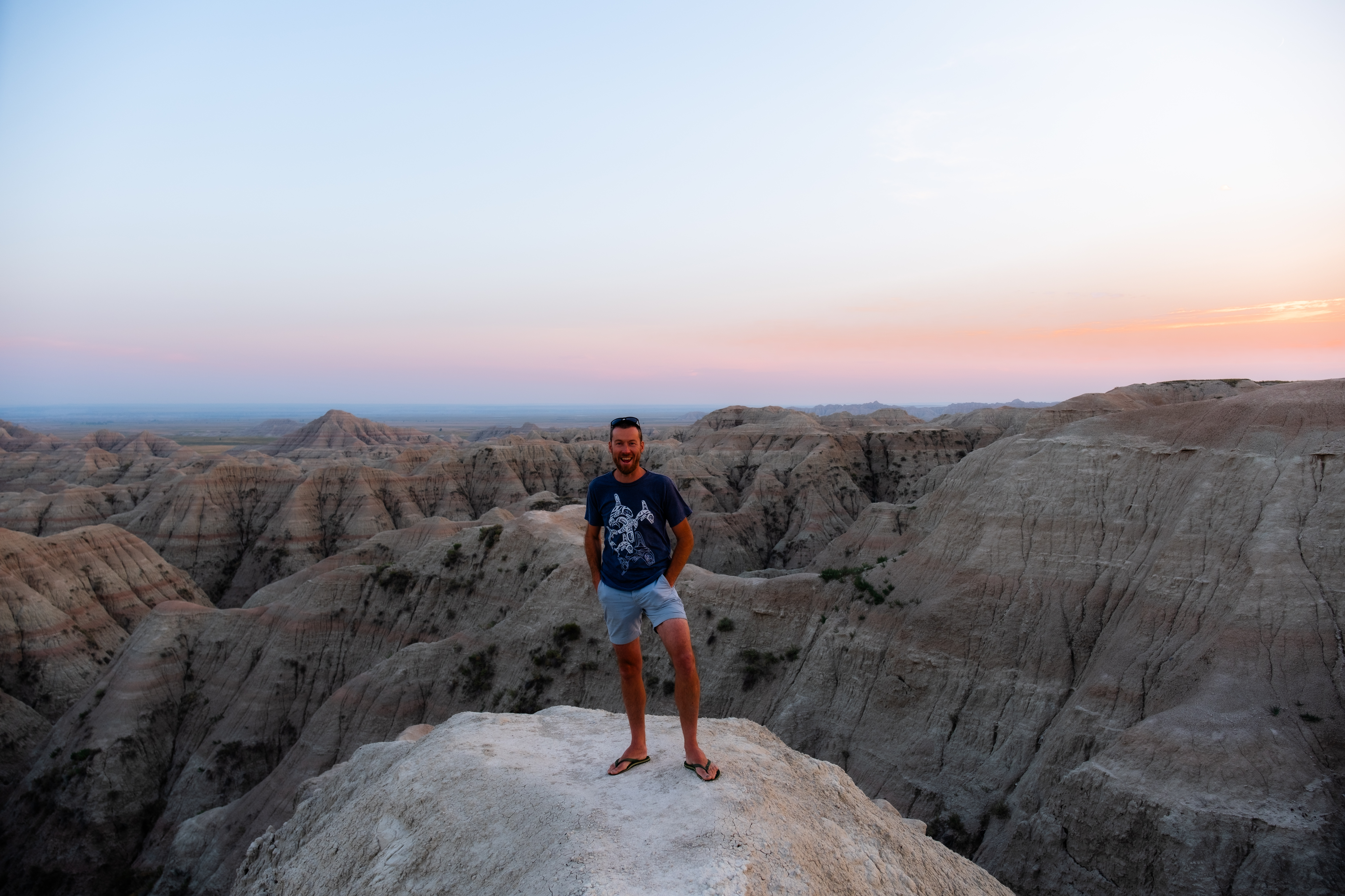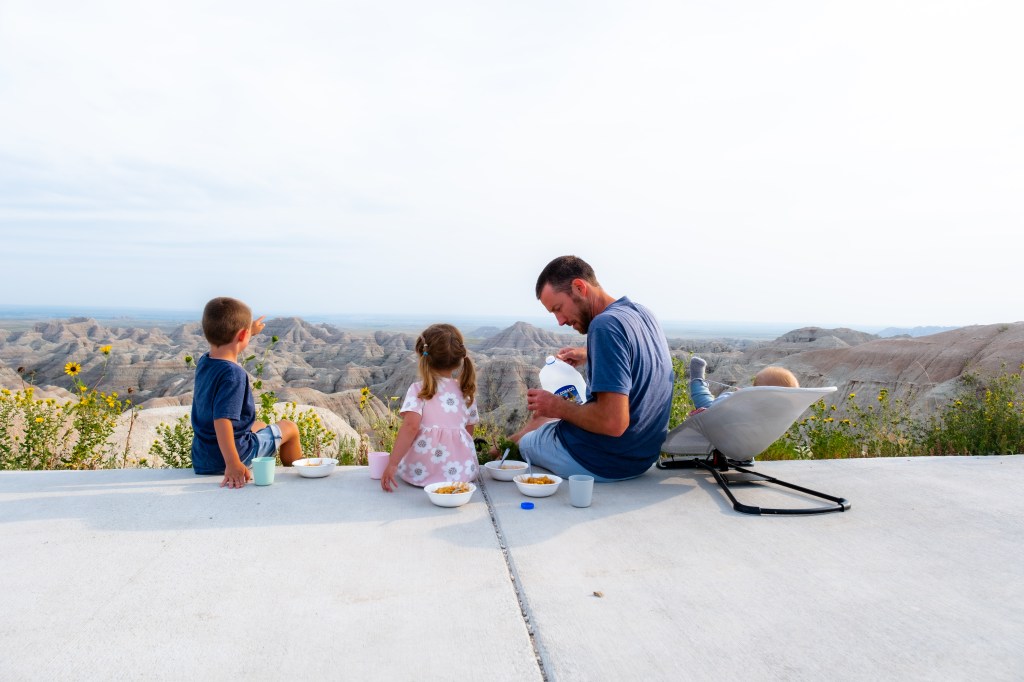 It’s also deteriorating unfortunately. And it can’t be stopped, so it probably won’t be heren anymore in a few decades, or sooner. You can touch and walk in between the ‘mountains of mud’, and we have a lot of fun exploring, without harming the nature. The Rangers tell us that it’s as green as it has been in years, because of a lot of rain. It is usually very dry. We have lunch in the RV and drive around for a bit (to let the kids sleep as well) and stop at the end of the afternoon at a viewpoint. We explore for a bit and decide to cook there (convenient to have all your groceries and kitchen with you!), so we make pasta and eat outside. The view remains breathtaking, with the sunset and golden hour proceeding. We drive towards the part where wildlife could be seen, but other than bison and deer we don’t see much. We don’t mean to sound spoiled, we enjoy those sights as well!