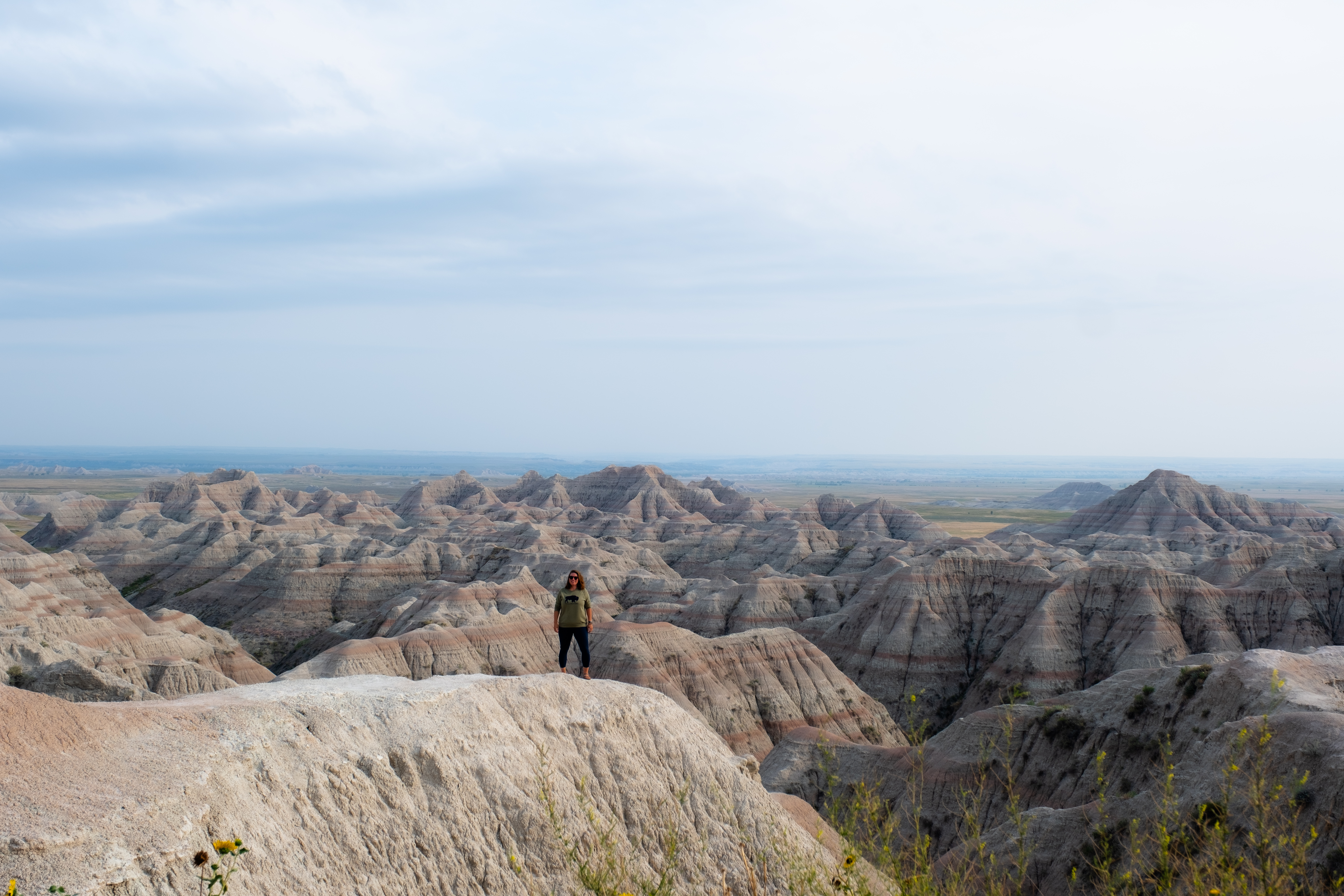 Op naar de Badlands! We hebben online wat foto’s bekeken, maar eigenlijk niet echt een idee waar we naar toe gaan, maar als we aankomen is het echt heel erg mooi. We starten bij het visitor center, wat groot en uitnodigend is, en bekijken meteen de tentoonstellingen. Siebe en Nora beginnen vol enthousiasme in hun Junior Ranger boekjes te tekenen, en we krijgen wat informatie. Volgens de ranger zijn hier ook de bighorn schapen te zien, en de beste kans is tijdens zonsondergang.